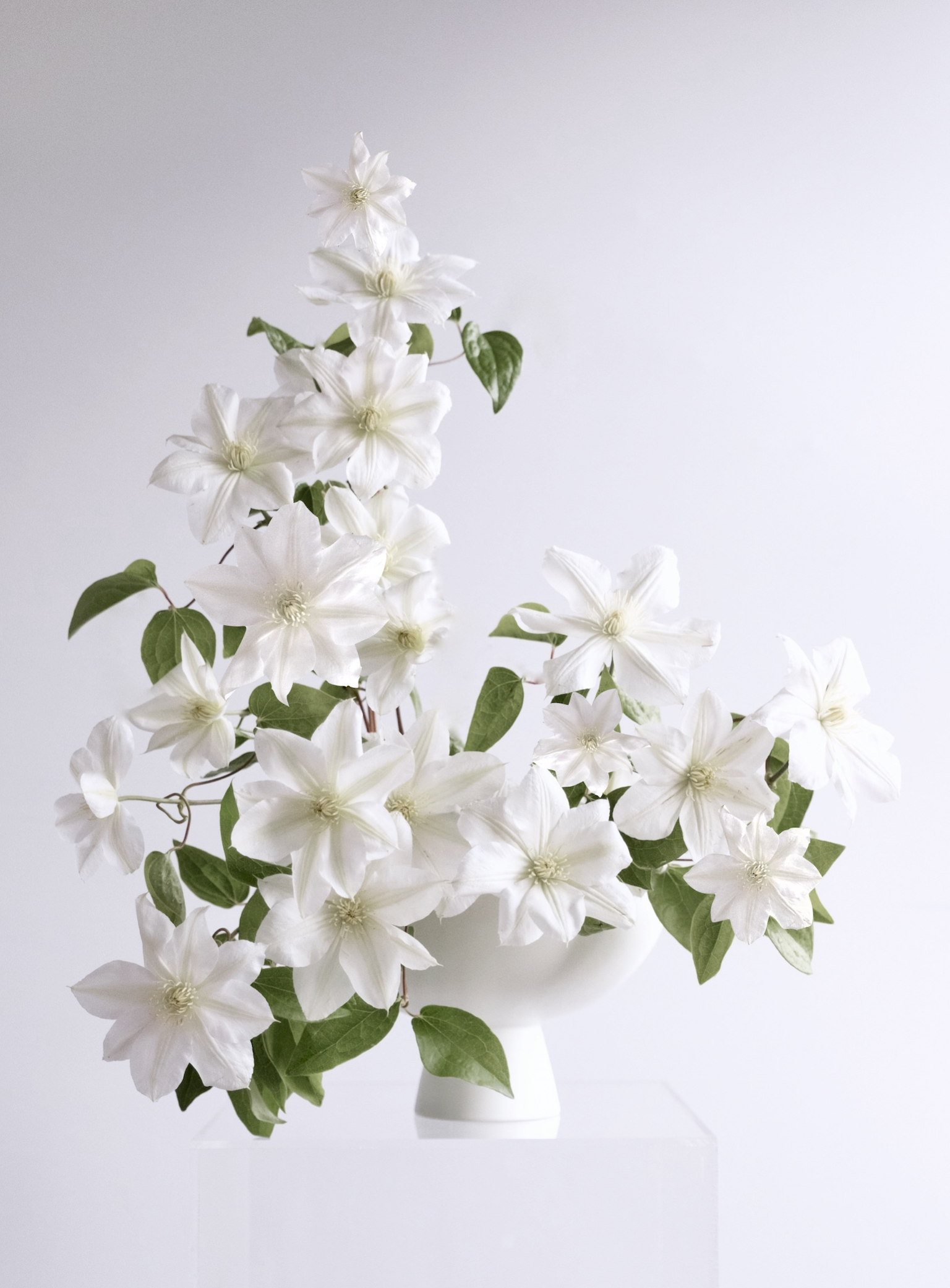 Recently, we had the pleasure of creating a beautiful and elegant design with Marginpar’s equally beautiful and elegant Clematis Amazing Vienna variety. Creating designs with just a single flower variety is something we enjoy doing to both showcase beautiful materials, but also to really showcase great technique, design and form. There’s something incredibly honest and simply beautiful about this type of design and if you’d like to know how to create your own, then you can get your hands on a free How I Made It, step by step tutorial for The Vienna Bowl, with Marginpar’s next newsletter.
